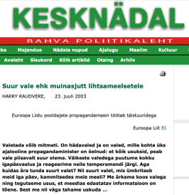 Kirjutasin Euroopa Liidu ja Eesti vahelistest suhetest 2003 aastal. Otsisin kirjatüki üles ja esitan kõigile lugemiseks. Need 18 aasta tagused ennustused on tänaseks kõik täitunud. See ei vaja tõestamist. Loe edasi “Suur vale ehk muinasjutt lihtsameelsetele – 18 aastat hiljem”